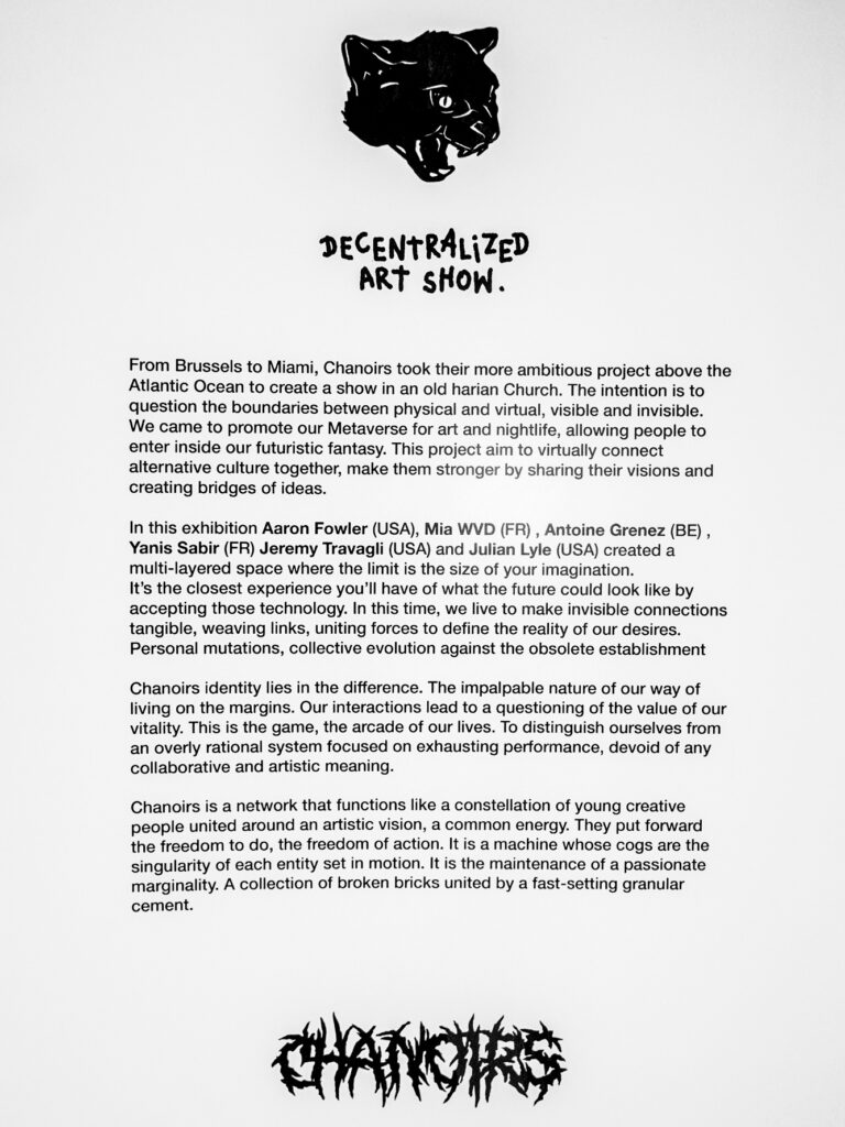 The Chanoirs metaverse stands out from other developing metaverses due to its cultural approach. Recognizing the variety of ideas that will emerge in the years to come, our collective aims to build connections between the virtual and the real. We are committed to contribute to help different initiative to inter-connect together and emphasizing the concepts of support and mutual assistance in the scene. With the power of digitization, making the the boundaries between international alternative scenes more permeable through culture and celebration.